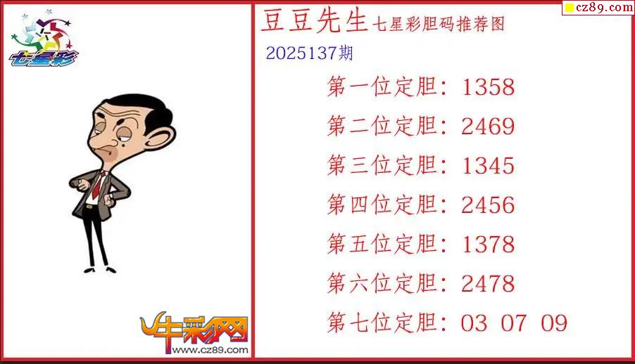 豆豆先生25137期七星彩三胆推荐图